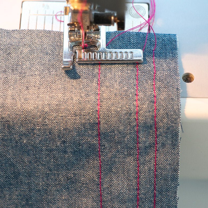 With the Ruler Foot you can easily sew precise parallel lines on your projects. This presser foot is also referred to as the stitch guide foot.